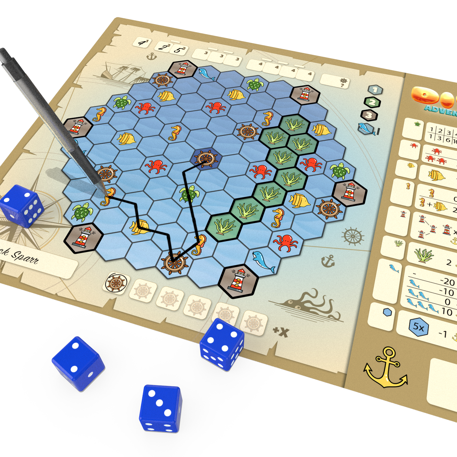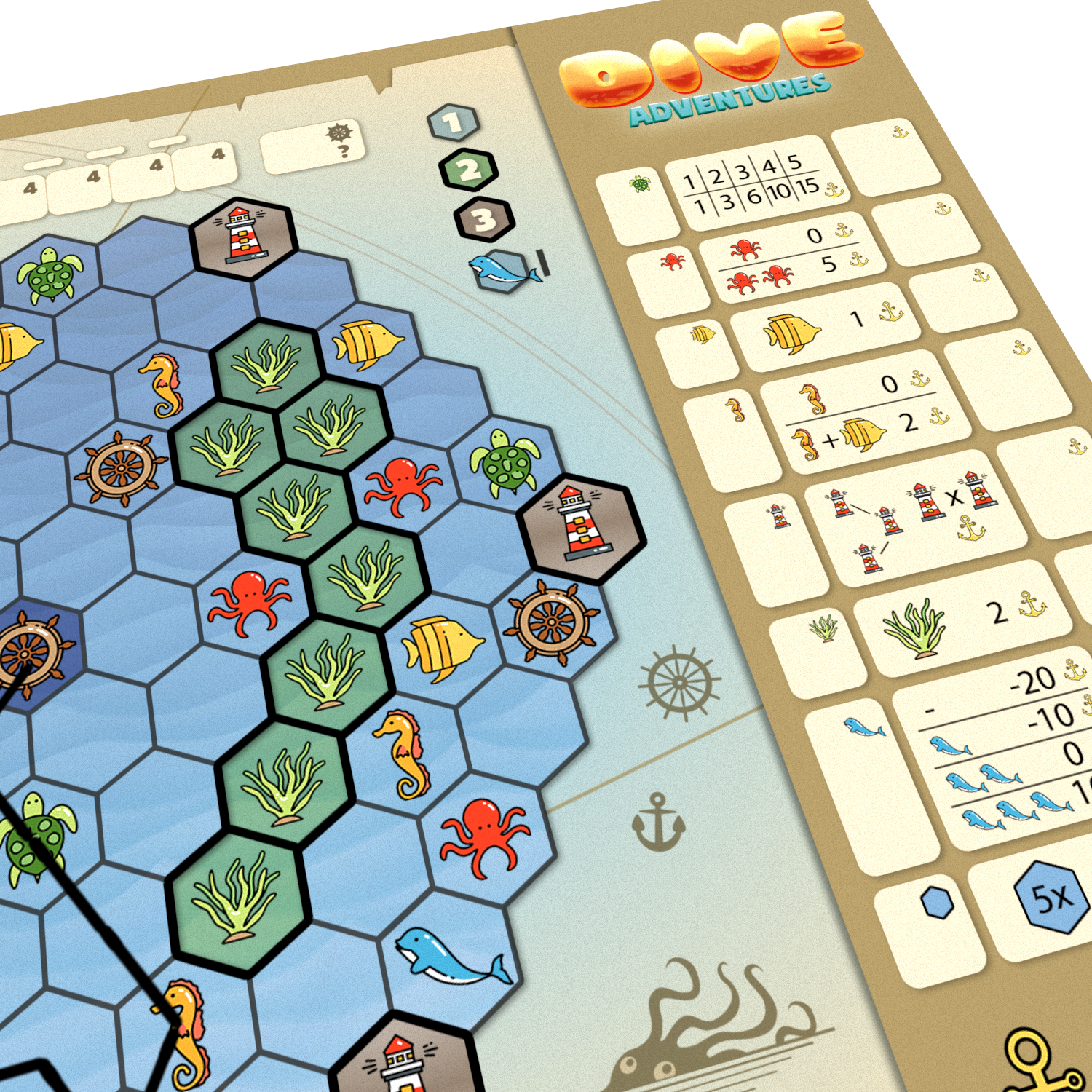 - Cada jogador é um mergulhador descobrindo os segredos e a vida marinha – enquanto tiverem oxigênio;